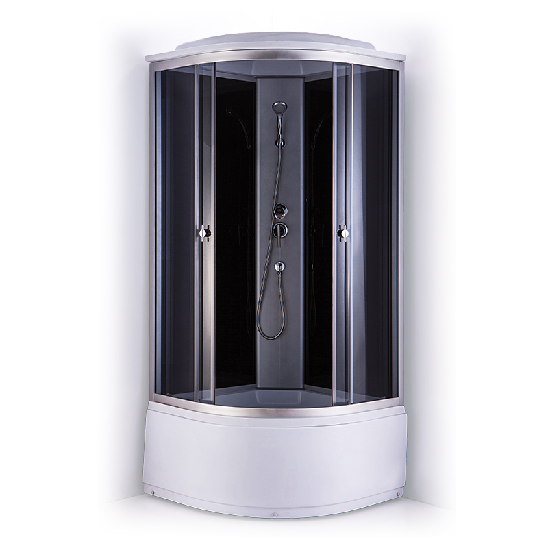 Dušas kabīne GOTLAND Paula 90x90x215cm, dziļais paliktnis (40cm), priekšējie stikli pelēki, aizmugure melna