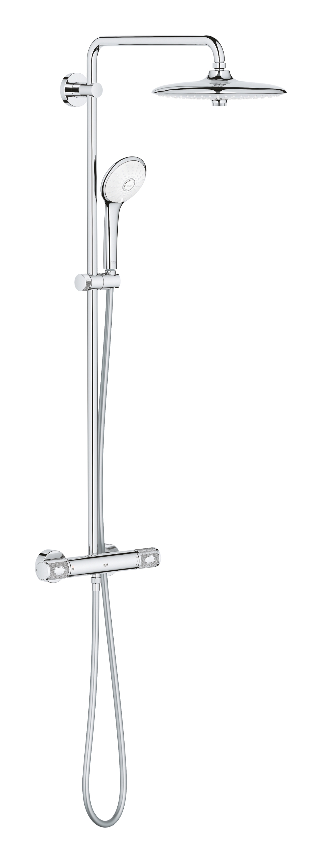 Dušas sistēma ar termostatu Euphoria 260, galvas duša ar 3 režīmiem, rokas duša Euphoria 110 Massage ar 3 režīmiem, hroms